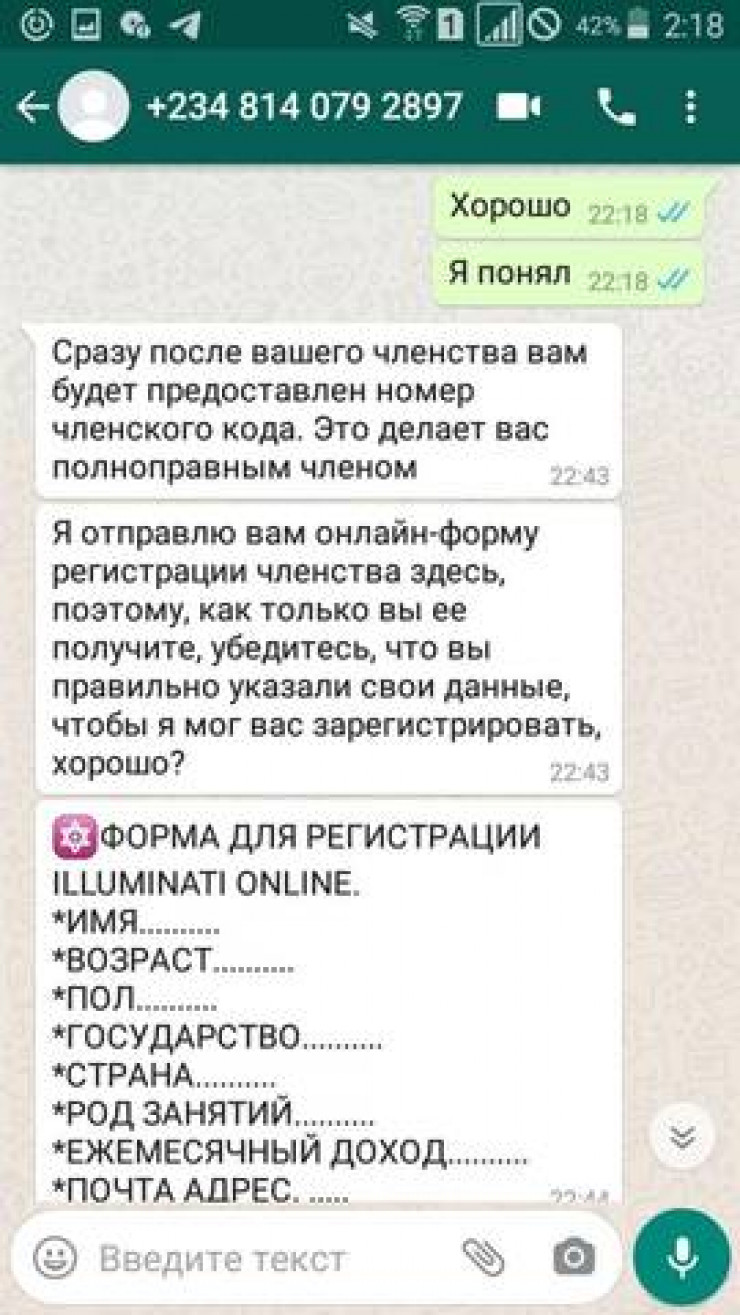 В мессенджере WhatsApp жителю Актау Михаилу предложили стать членом тайной организации. Он решил согласиться и посмотреть, как сложится его дальнейшая судьба после вступления в тайное общество, передает Tengrinews.kz со ссылкой на Lada.kz.