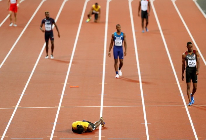 Ямаец получил травму в финале эстафеты четыре по 100 метров на чемпионате мира по легкой атлетике в Лондоне. Болт бежал на последнем четвертом рубеже, но на финишной прямой внезапно захромал, остановился и упал на дорожку. Ранее до этого старта он заявлял, что испытывает "легкую боль".
