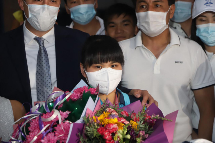 Тяжелоатлеты, бронзовые призеры Олимпиады-2020 в Токио Игорь Сон и Зульфия Чиншанло приземлились в аэропорту Алматы, передает корреспондент Tengrinews.kz.