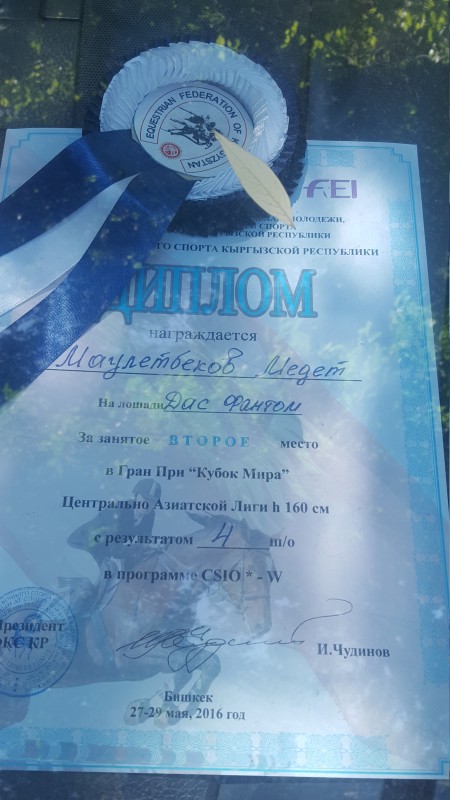 Казахстанец Медет Маулетбеков занял второе место на этапе Кубка мира по конному спорту, проходящем в Кыргызстане с 27 по 29 мая, передает Tengrinews.kz со ссылкой на Федерацию конного спорта Казахстана Церена Чумашкаева.