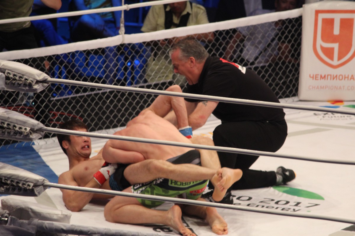 В весе до 70,3 килограмма казахстанский боец Дамир Исмагулов одержал победу в первом раунде над испанцем Педро Эуженио Гранхо.