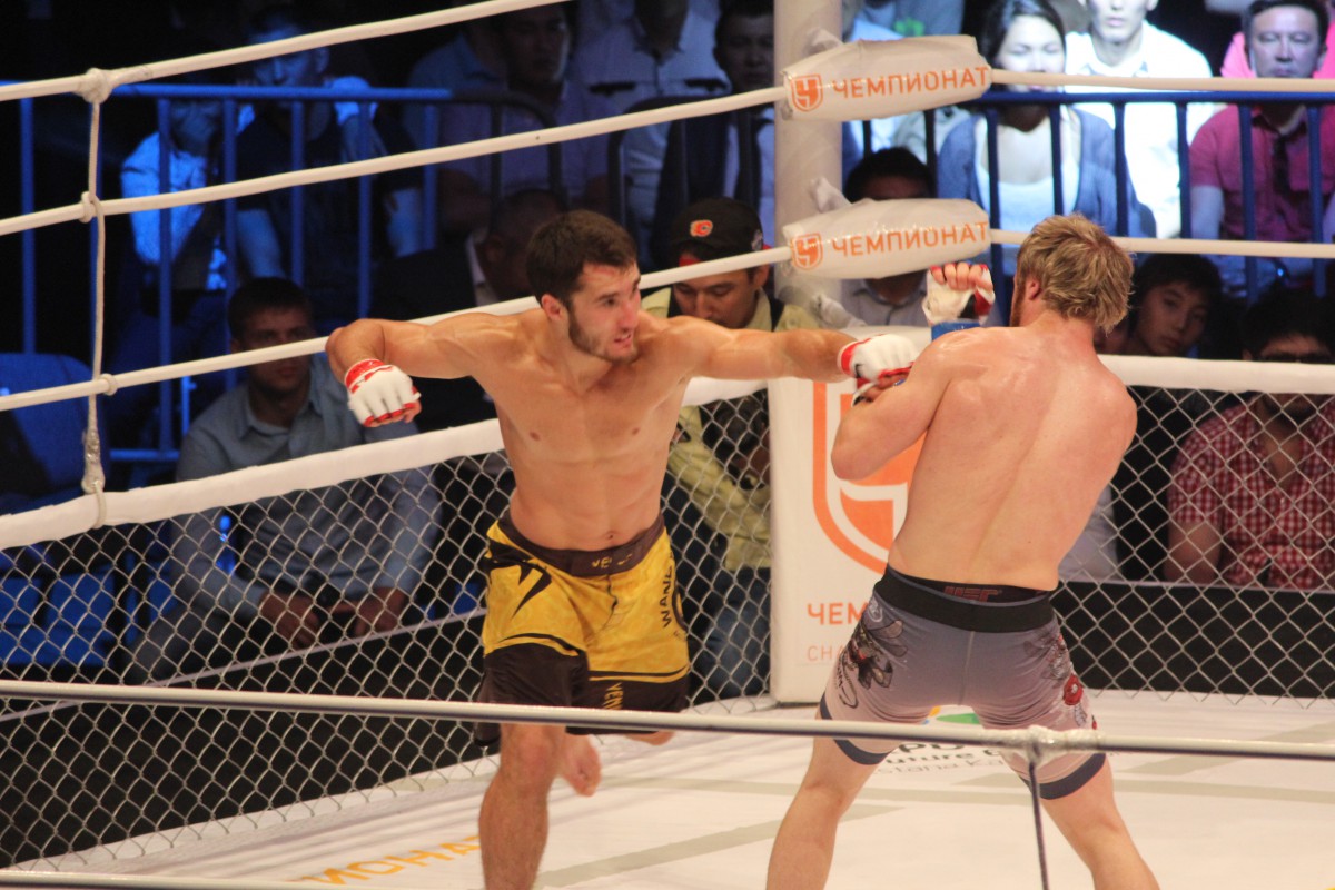 В весе до 84 килограммов казахстанский боец Еркинбек Инжель проиграл россиянину Артему Фролову. Бой завершился в первом раунде.