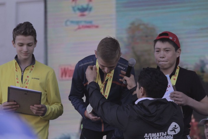 Дети в возрасте от 10 до 14 лет участвовали в забеге на три километра. Среди мальчиков лучшее время показал Руслан Аумов, который преодолел дистанцию за 10 минут 49 секунд минут. Практически такое же время показал Владислав Переверзев, у него второе место. А третье место (11 минут 10 секунд) занял Темирлан Султанов.