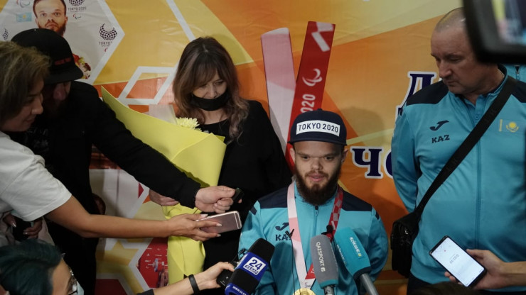 Казахстанского парапауэрлифтера Давида Дегтярева, который завоевал золотую медаль на Паралимпиаде в Токио, встретили в аэропорту Нур-Султана, передает корреспондент Tengrinews.kz.