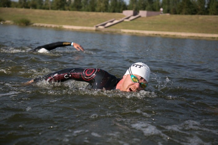 Вместе с индивидуальным стартом на той же полужелезной дистанции проведена и командная эстафета. Первым в индивидуальном зачете в секции плавания стал Станислав Редько из команды "Astana Team", который приплыл 1,9 километра за 21 минуту. Он опередил троих человек из категории профессионалов - Виктора Земцева из Украины, Ивана Тутукина из России и казахстанца Максима Крята.