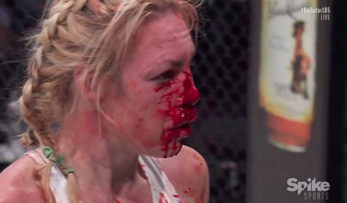 "Ух ты! Вундеркинда бокса Хизер Харди только что отдубасили на Bellator 185" - пишет MMA Raw&Uncut.