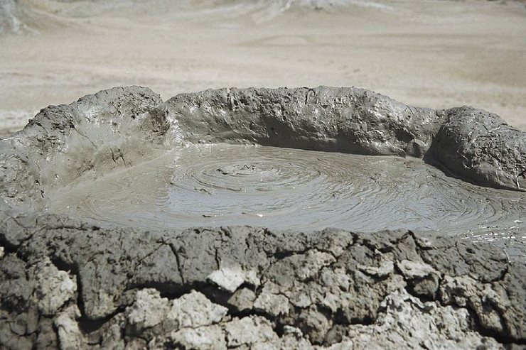На грязевых вулканах Азербайджана можно увидеть, как из-под земли течет соленая вода и переносит глину на поверхность, создавая характерные пузырящиеся глиняные горшки (грифоны).