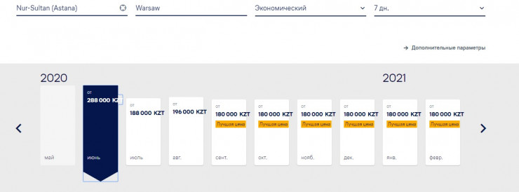 По зарубежным направлениям с июня 2020 года предлагает свои билеты и национальный перевозчик "Эйр Астана". Стоимость билетов начинается от 180 000 тенге.