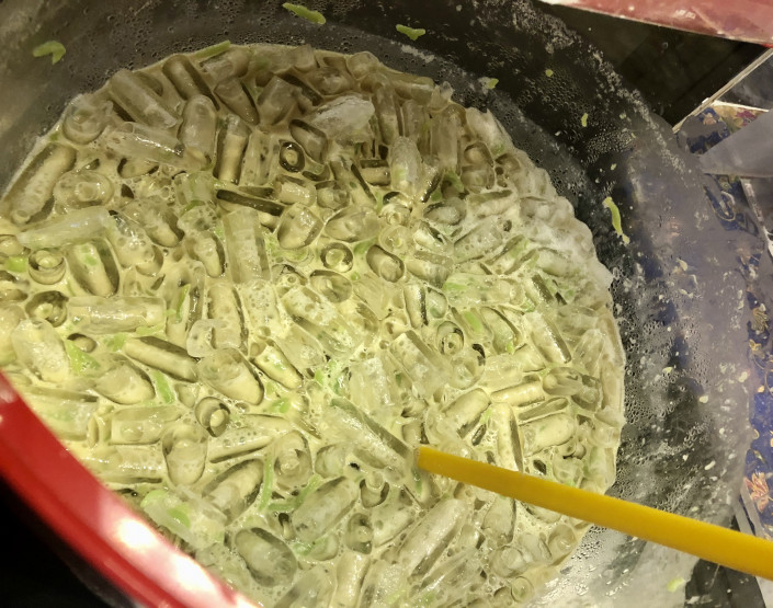 На глазах у посетителей международного мероприятия 30-летний алматинец приготовил и необычный бешбармак в удобной порционной подаче в виде равиоли. Такую круглую форму он выбрал, чтобы сотням посетителей было удобнее попробовать казахское национальное блюдо. Остальные традиционные ингредиенты были сохранены. Зеленый лук, помидор черри и казы идеально сочетались между собой.