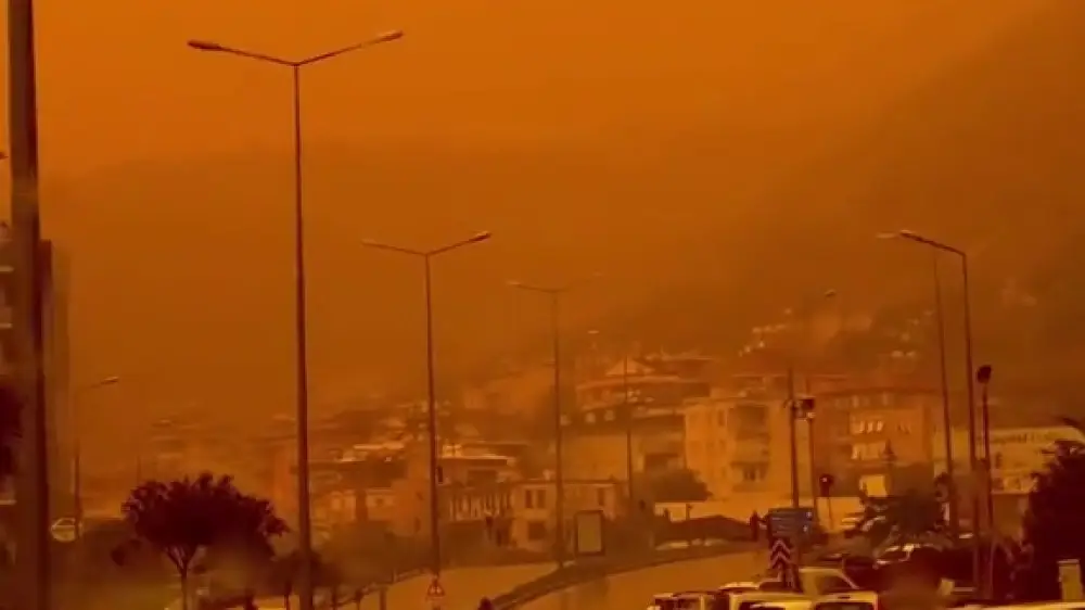 Жители турецкой Антальи сегодня увидели необычную картину: город накрыла мощная красная буря. Пыль, принесенная ветрами из Северной Африки, окрасила небо в густые оранжево-красные оттенки и заметно ухудшила видимость на дорогах, передает Tengri Travel со ссылкой на Antalyahakkinda.