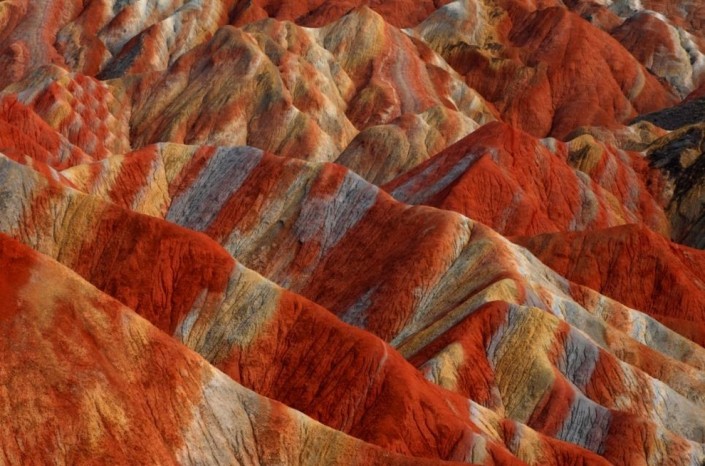 Красноватый песчаник китайских гор гор играет на солнце множеством оттенков. Ученые считают, что это результат движения земной коры, выветривания и эрозии, происходивших в течение миллионов лет. Кроме разноцветного "слоеного пирога" из различных пород, большой интерес представляют местные ландшафты со множеством пещер, гротов, оврагов и долин.