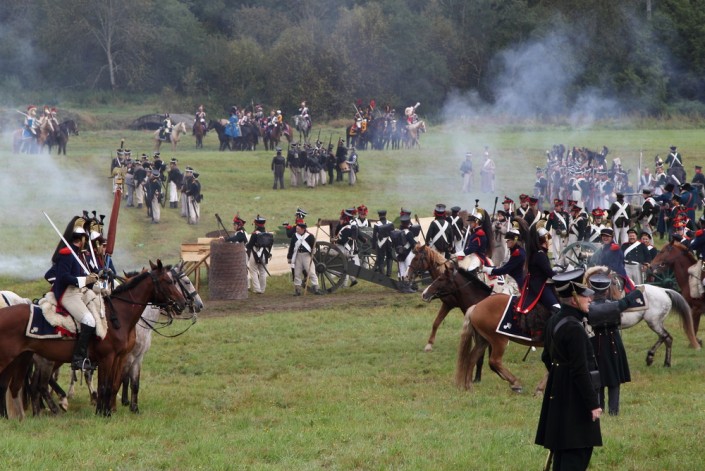 Битва под Бородино. В 120 километрах от Москвы находится легендарное место сражения между русскими и французскими войсками. Битва состоялась 26 августа 1812 года у села Бородино. В ней участвовали около 300 тысяч человек и более 1200 артиллерийских орудий. В ходе битвы, которая длилась всего 12 часов, погибли около 70 тысяч человек. Русской армии пришлось отступить и оставить Москву противнику. Но Наполеон не смог воспользоваться плодами побед и был вынужден отступить, неся большие потери.