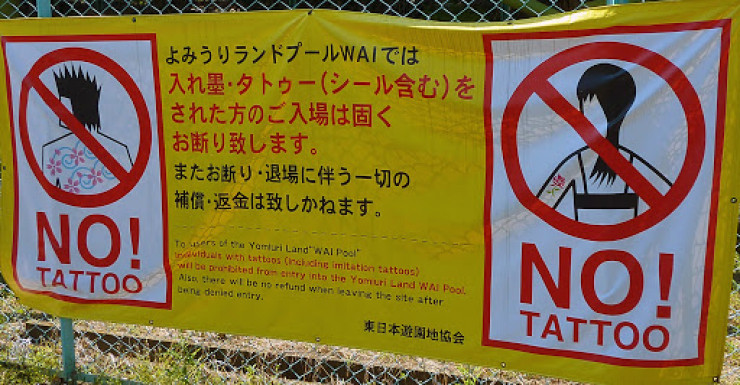 В японском обществе существует предубеждение против татуировок. Во многом это объясняется тем, что татуировки часто связаны с японской мафией - якудза. Они неоднократно запрещались законом, чтобы усложнить жизнь преступникам. Запрет просуществовал до 1946 года. Но и сейчас японские тату-салоны работают полулегально. А людям с татуировками администрации спортзалов, общественных бассейнов и бань запрещают вход. Впрочем, в некоторых местах посетители могут получить специальную наклейку, чтобы заклеить татуировку и попасть внутрь.