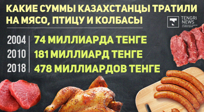 Если верить статистике, то из года в год в Казахстане потребление молочных и мясных продуктов только увеличивается. По данным Комитета по статистике МНЭ РК, в 2004 году покупатели тратили на мясо, птицу и колбасы 74 миллиарда тенге, в 2018 году - 478 миллиардов тенге.