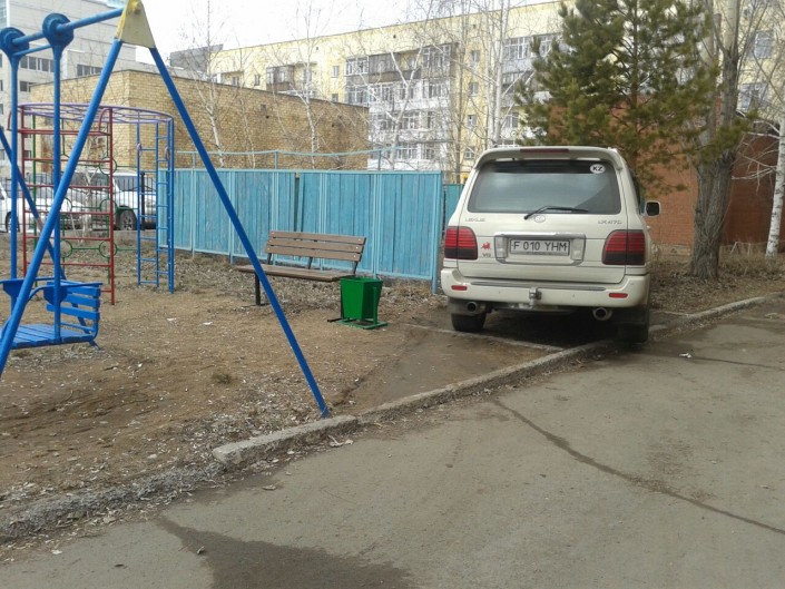 Житель Астаны прислал нам очень показательные снимки припаркованных внедорожников на детских площадках в столичных дворах.