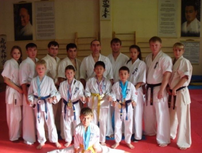 На сайте республиканского центра карате есть список тренерского состава столичной федерации карате шинкиокушинкай. Помимо Болата Бекмагамбетова, там можно найти его ученика - мастера спорта Владимира Артюшина (на нижнем фото справа). Это тот самый парень, который, несмотря на болезнь тренера, смог поехать на чемпионат России и выступить на нем достойно.