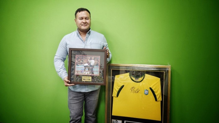 Самый дорогой экспонат на продажу в коллекции мужчины -  боксерские перчатки с первого боя Мухаммеда Али с автографом легендарного спортсмена. По словам Аслана, на данный момент они оцениваются в 60 миллионов тенге.