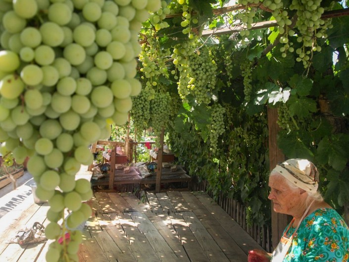 Очень символично следующее фото, которое сделал ее внук: Галина Кузьминична всю жизнь, не жалея себя, отдавала свои силы, знания и опыт виноградникам. А теперь в старости виноград в ее саду своей тенью спасает ее от жары.