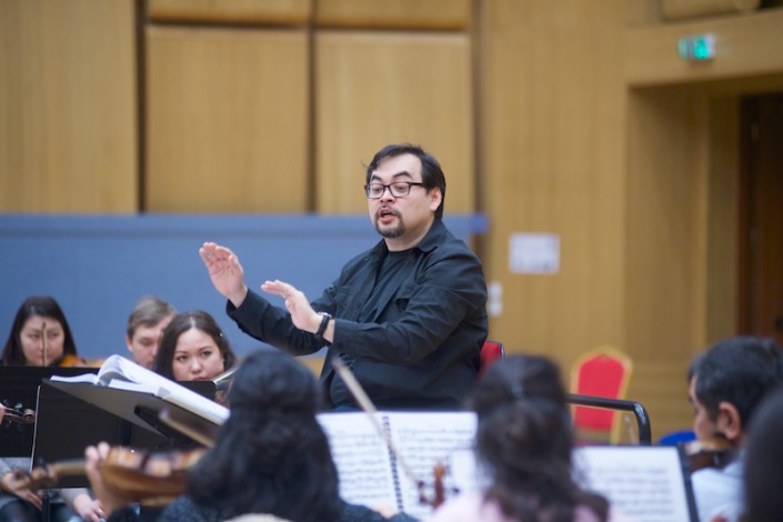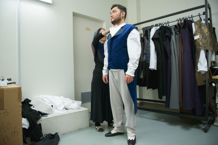 А сцену дуэли уже репетируют в зале. Онегин и Ленский отсчитывают шаги и целятся друг в друга. Партию Онегина готовят Алексей Исаев (Россия) и Талгат Мусабаев. Талгат рассказывает, что в 24 года он впервые исполнил эту роль в Большом театре России.