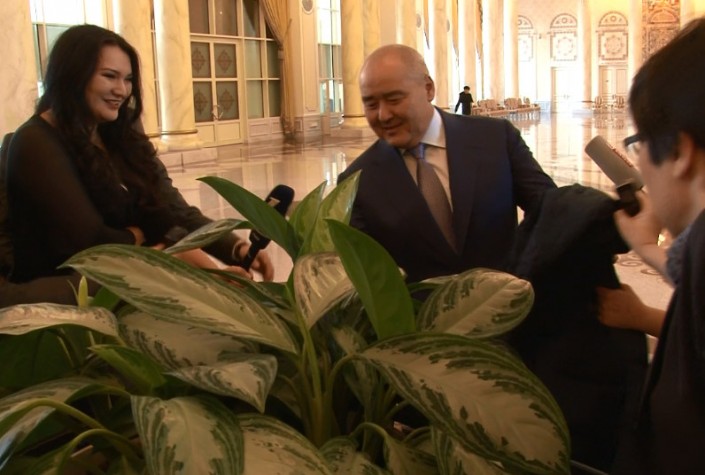 Но тут же попадает в кольцо телекамер и корреспондентов с диктофонами и микрофонами. Глава "Самрука" соглашается ответить на вопросы, но сначала снимает свою верхнюю одежду. Журналисты предлагают ее подержать на время этой импровизированной пресс-конференции.