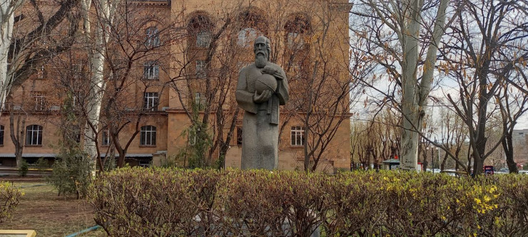 Фото: площадь перед Ереванским государственным университетом, памятник армянскому ученому Анании Ширакаци (VII век)