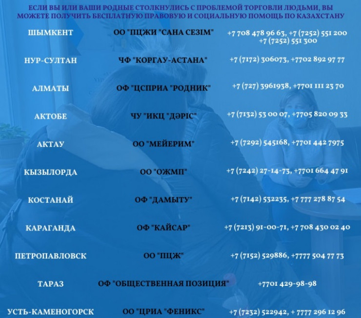 У нас довольно много кейсов, когда кого-то удерживают, и есть среди них случаи с казахстанцами. Сейчас самая большая проблема - это проблема трансконтинентальных группировок. Одна из последних нашумевших историй произошла в Бахрейне, куда заманивали девушек из Казахстана, России и других стран и принуждали к занятиям проституцией.
