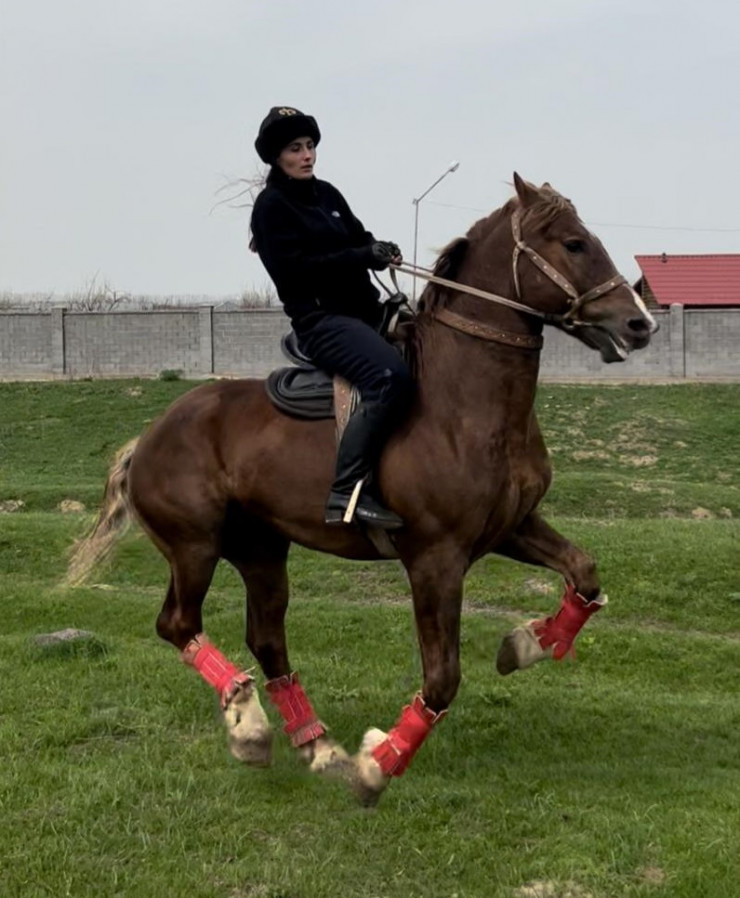 Всех озвучивать не буду, но на данный момент Самсон. Это конь, на котором я сейчас езжу. Хорошего коня я сама покупаю за большие деньги, недешево: есть данчаки, буденновские, поляки, костанайские, есть чистопородные, есть помесные, данчак с рысаком, или костанаец с рысаком, или поляк с рысаком.