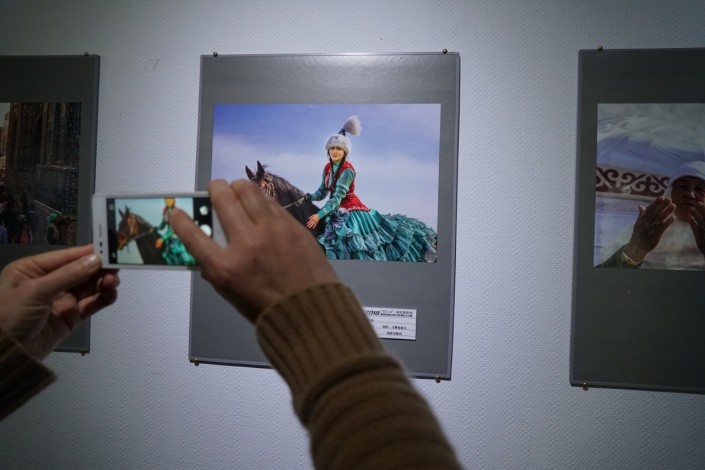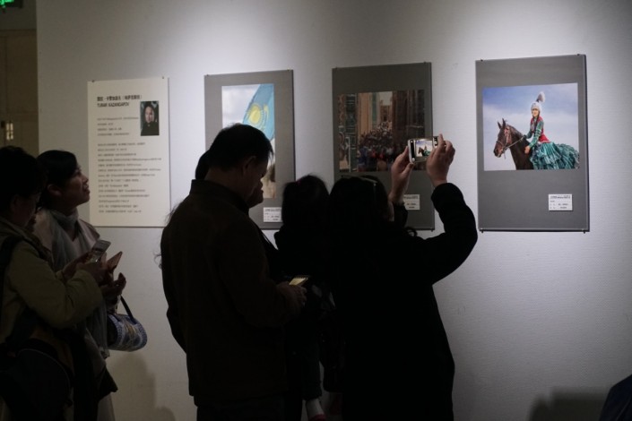 Первыми выставку оценили приглашенные чиновники. Они сразу остановили свой взгляд на фотографии казахской девушки, сидящей верхом на лошади. Китайцы долго и бурно обсуждали традиционный казахский женский наряд.