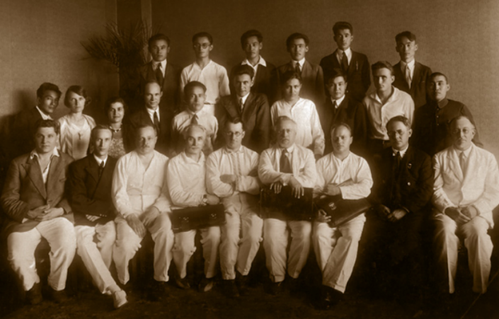 Выпускники Института цветных металлов и золота, Москва, 1936 год. Во втором ряду в центре - Динмухмед Кунаев.