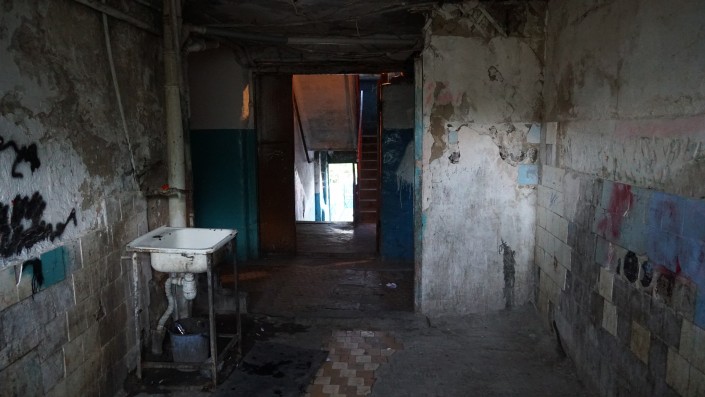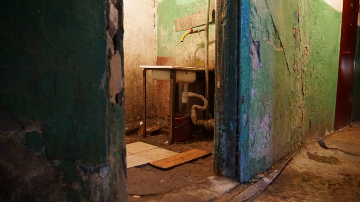 Тем временем немногочисленные владельцы комнат, которые продолжают жить в этом здании, ума не приложат, что делать с общим туалетом. "Очень плохо живется, честное слово. Я вот на третьем этаже живу, и как в туалет ходить? Я уже дважды падала. Как мне дальше жить?" - вопрошает 85-летняя пенсионерка.