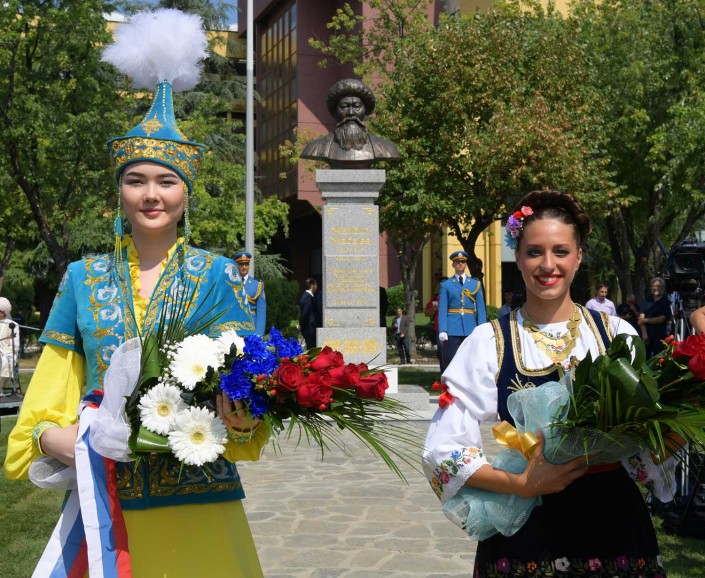 От Жамбыла до Теслы - три месяца, пять тысяч километров и шестьдесят градусов по Цельсию. В конце лета в Белграде во время визита Нурсултана Назарбаева был открыт памятник великому акыну. Палящее августовское солнце, в котором словно таял нежный шелк казахских костюмов ("Ваши девушки - ну о-очень красивые", - улыбались сербы), греющие душу звуки кобыза, дружеские объятия хозяев с гостями - церемония получилась по-семейному теплой.