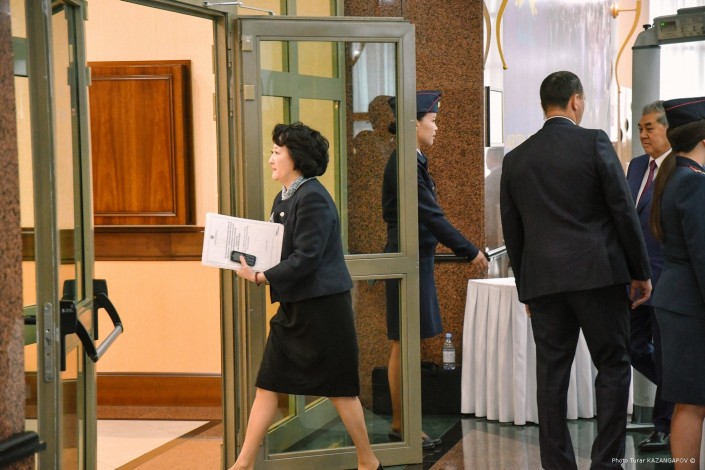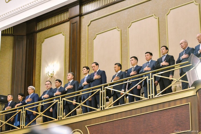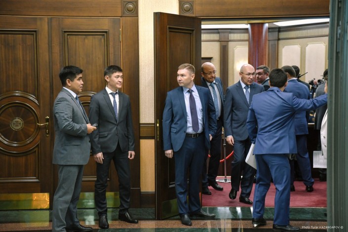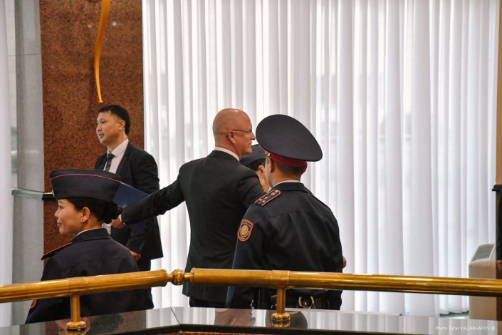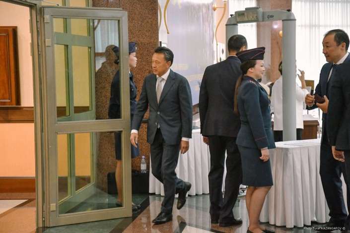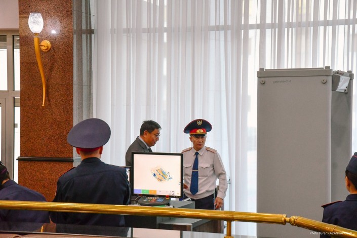 Внутри Мажилиса было все по привычному регламенту: охрана на входе пропускала посетителей через рамку металлодетектора, а их вещи через сканер. Эту процедуру проходили все приглашенные, включая глав нацкомпаний и высокопоставленных чиновников.