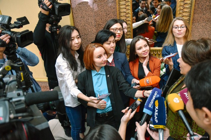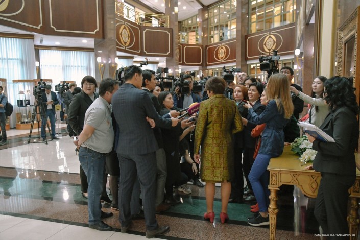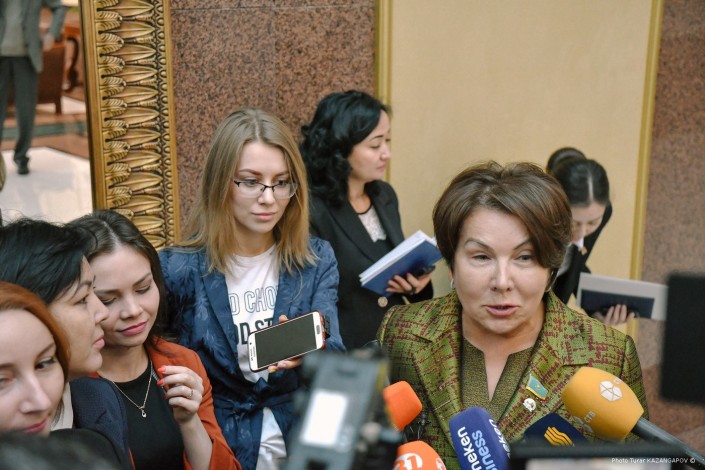 В коридоре Мажилиса, ведущем в зал совместных заседаний, тоже все было привычно: журналисты по обыкновению окружили депутата Гульжану Карагусову, которая в свойственной ей манере давала им свои уверенные ответы.