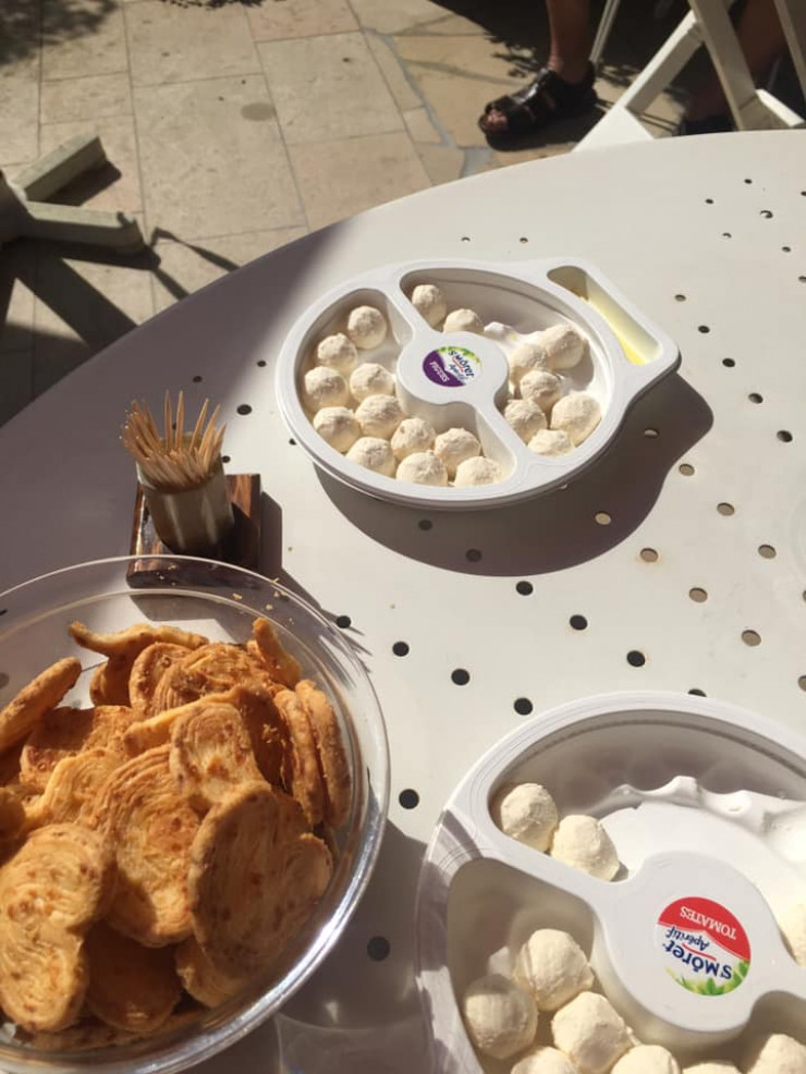 "Сегодня было запланировано мое знакомство с родственниками и друзьями Фабриса. На аперитив вместе с вином было предложено вот такое блюдо. На вид похоже на наш казахский курт. Я прям рукой полезла в тарелку, чтобы взять одно лакомство. И... мои пальцы полностью оказались в этом белом шарике.