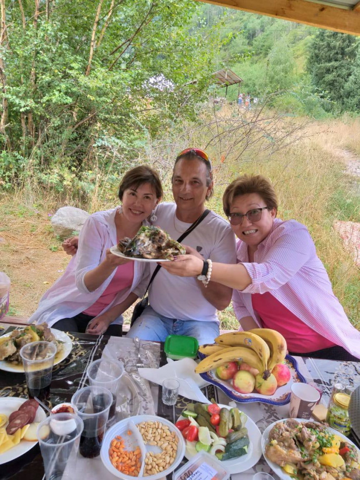 Мой муж приезжал в Казахстан знакомиться с моими детьми. Потом приезжал на регистрацию брака. Что ему понравилось и чем он был удивлен в Казахстане. У нас очень дружелюбный народ. Мои друзья приглашали нас в гости и на пикник. В гостях его удивило количество блюд на длинном столе, которые стояли в три этажа. Он тихо спросил:
