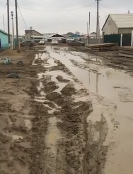 "В данное время улицы заполнены водой, а также грязью, невозможно ездить. Атырау, поселок Жумыскер-1, улица Кентi-26", - говорится в сообщении.