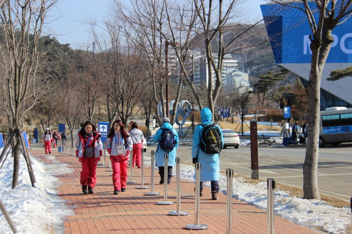 В целом в олимпийских деревнях смотреть не на что. Кроме той, которая в Пхенчхане. В дни перед открытием тут постоянная атмосфера праздника. Здесь то и дело проходят церемонии поднятия флагов стран-участниц, которые сопровождаются шумными представлениями.