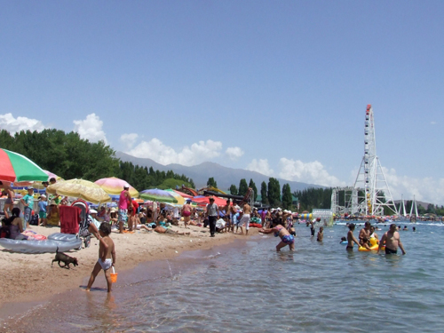 Проверка паспорта, штамп в документе, и я направляюсь в "Алтын-Кум", пансионат в селе Чон-Сары-Ой. Проживание в номере полулюкс в новом корпусе с трехразовым питанием обходится в 1600 сомов в сутки (около пяти тысяч тенге). Голубой кафель в ванной, душевая кабина, телевизор со спутниковыми каналами, две кровати со свежевыстиранным бельем и балкон с пластиковыми окнами. Все блага цивилизации. У входа в столовую предлагают экскурсии в Григорьевское, Семеновское ущелья, культурный центр "Рух Ордо", "Мертвое озеро". Как оказалось, с частным таксистом за значительно меньшую сумму легко договориться. Магазины, дискотека, интернет-клуб, теннисный корт функционируют до полуночи, а пляж к вашим услугам в любое время суток. Однако желающих искупаться ночью голышом не так уж много. На берегу в темноте молодежь запускает цветные фонарики, как бы посылая на другой берег сигнал.