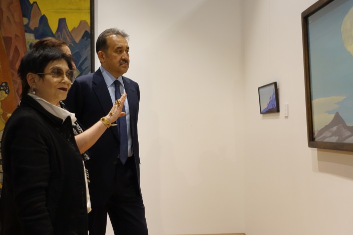 "Впервые состоялся диалог двух стран на уровне языка живописи, на уровне языка искусства. И диалог этот никогда бы не произошел, если бы не совершенно грандиозная инициатива Арыстанбека Мухаммедиевича - министра культуры и спорта Казахстана. Также эта инициатива никогда бы не состоялась, если бы в Нью-Йоркском музее Рериха не работал бы грандиозный ученый, директор музея Гвидо Трепш, который выстоял эту выставку и сделал все возможное для того, чтобы она приехала в Казахстан", - сказала куратор выставки.