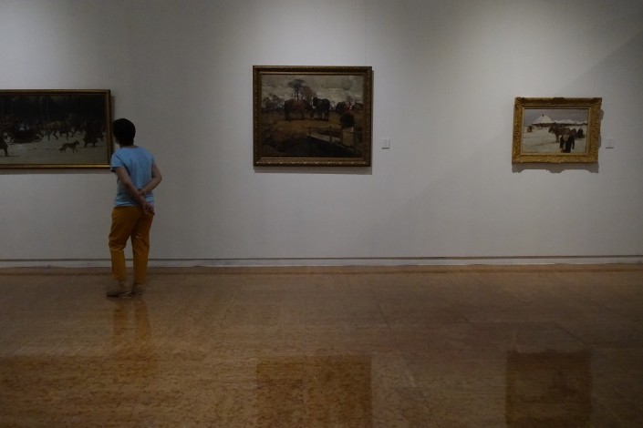 Помимо работ Рериха, здесь же проходит еще одна выставка "Шедевры русского искусства из частных коллекций США", которую организовал и полностью проспонсировал владелец собственной галереи в Нью-Йорке, академик Русской академии искусств Анатолий Беккерман.