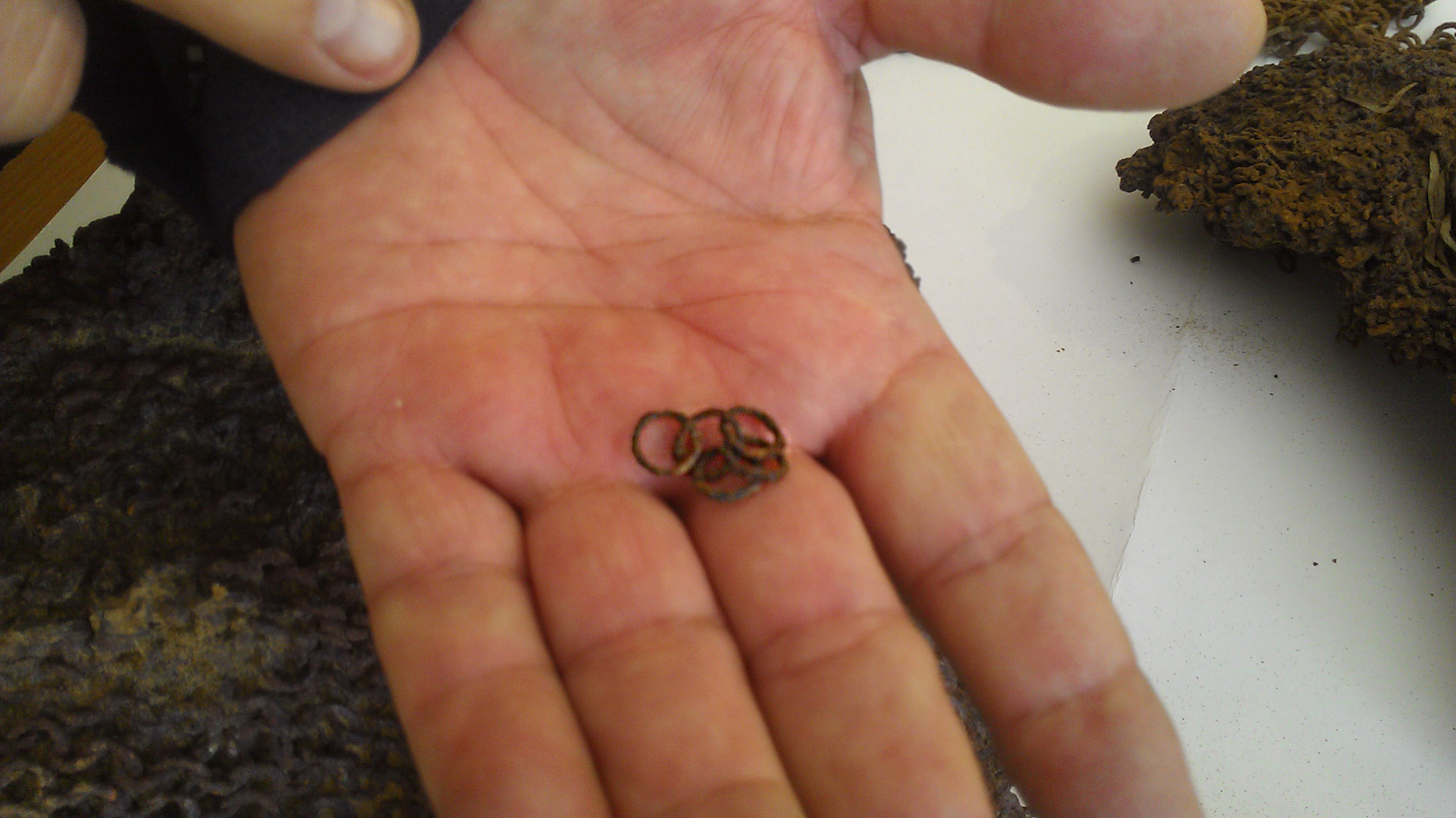 Здесь две кольчуги, накидки под шлем и куски самого шлема