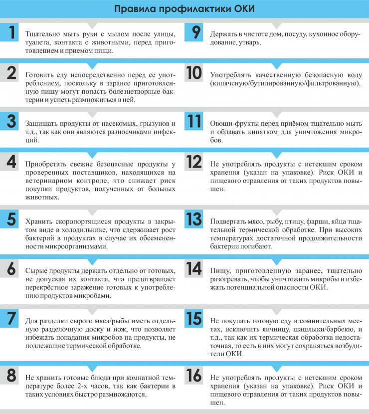 Для предотвращения заражения сальмонеллезом необходимо соблюдать ряд правил, отраженных в таблице. В случае подозрения на ОКИ необходимо обращаться за медицинской помощью.