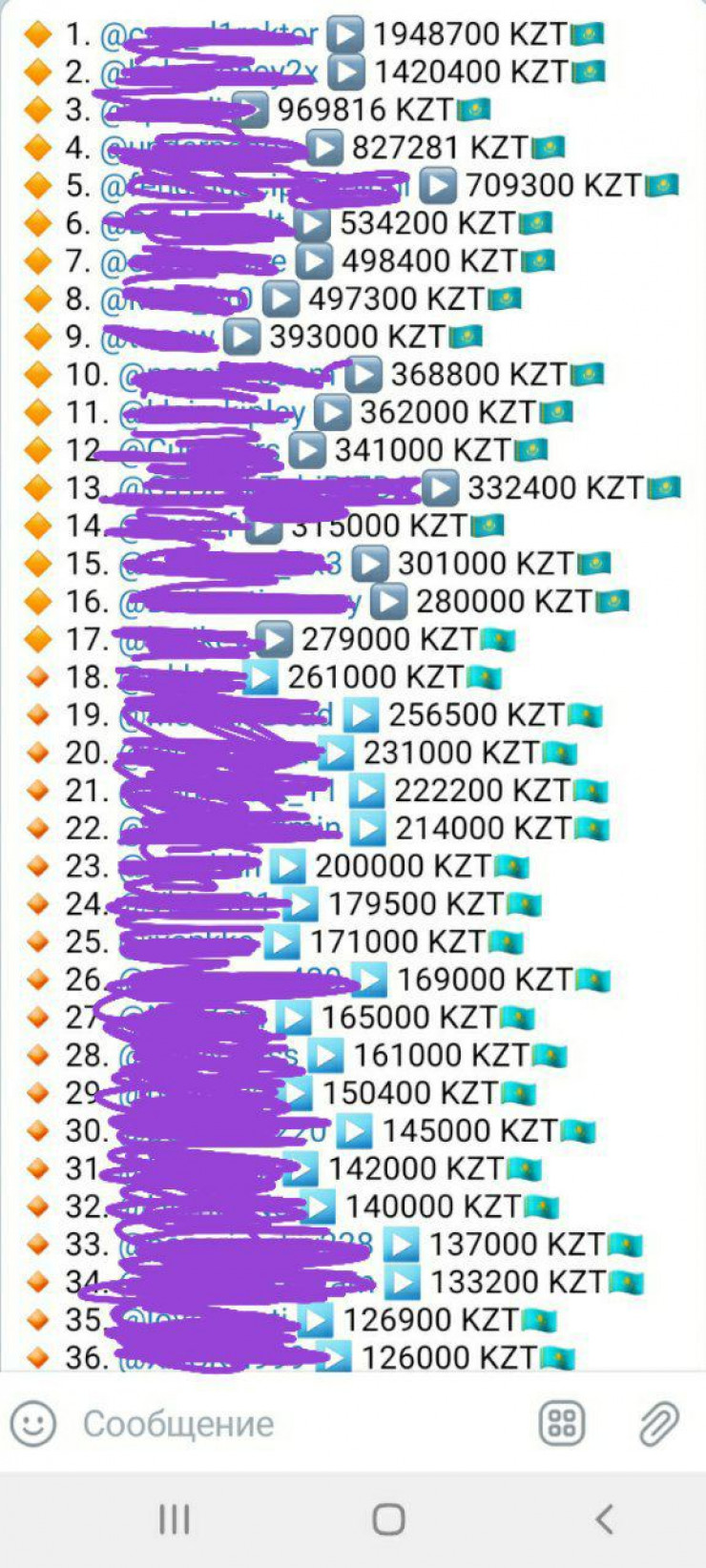 В "подарок", как выразился Хоста, он отправляет мне скриншот из Telegram-канала, где ведется "бухгалтерия" одной из команд, специализирующейся на казахстанском рынке. Насколько можно верить этим данным - непонятно.