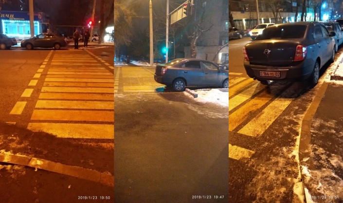 Вечером 23 января неравнодушные граждане запечатлели на фото парковку Ravon на пешеходном переходе по улице Гоголя (угол улицы Каирбекова).