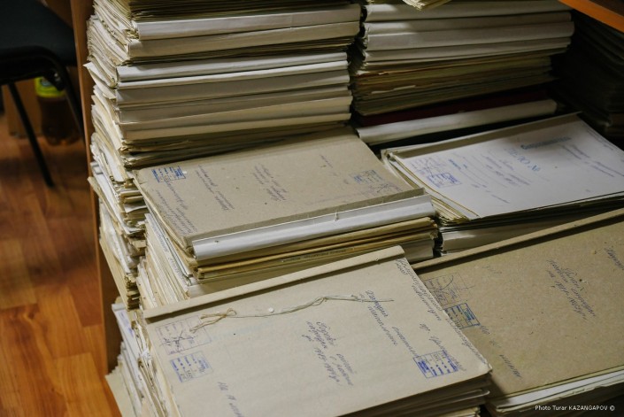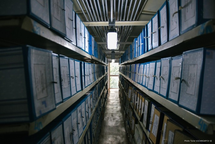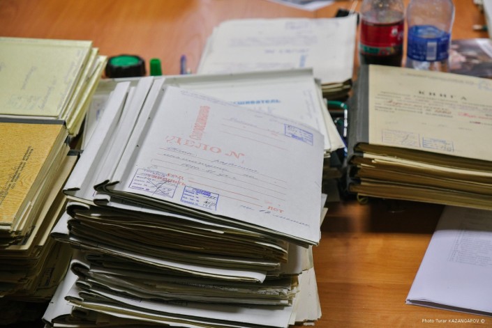 Мы в одном из зданий городского архива. Здесь расположен читальный зал, в котором могут работать исследователи, и здесь же хранятся архивные документы. В этих папках вся история столицы Казахстана. В прохладных коридорах хранилища царит особая атмосфера. В воздухе витает специфический запах - так пахнут архивные дела. Вместе с фотографиями старого города этот запах, словно машина времени, переносит нас на несколько десятков лет назад.
