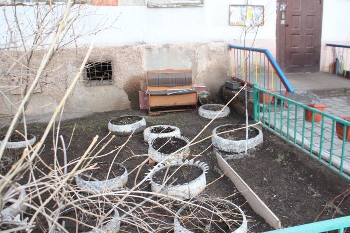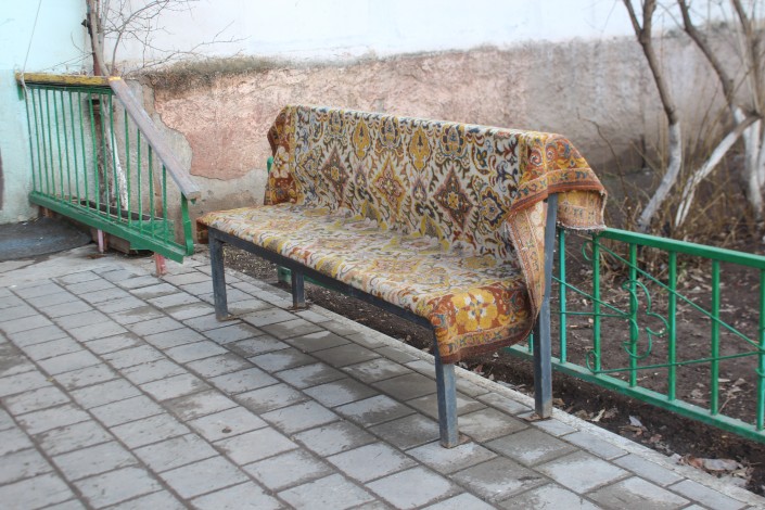 В каждом дворе есть урны, лавочки, причем некоторые скамейки заботливо накрыты коврами.
