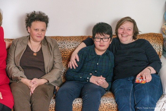"Рахмет", - произносит свои первые казахские слова Марк. Приемные родители Марка - на нижнем фото слева.