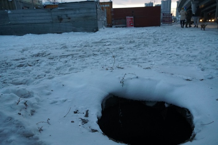 В тот самый день люк выглядел примерно так. Как оказалось, во время прогулки женщина обогнала детей и не заметила, как мальчик провалился в присыпанный снегом люк.