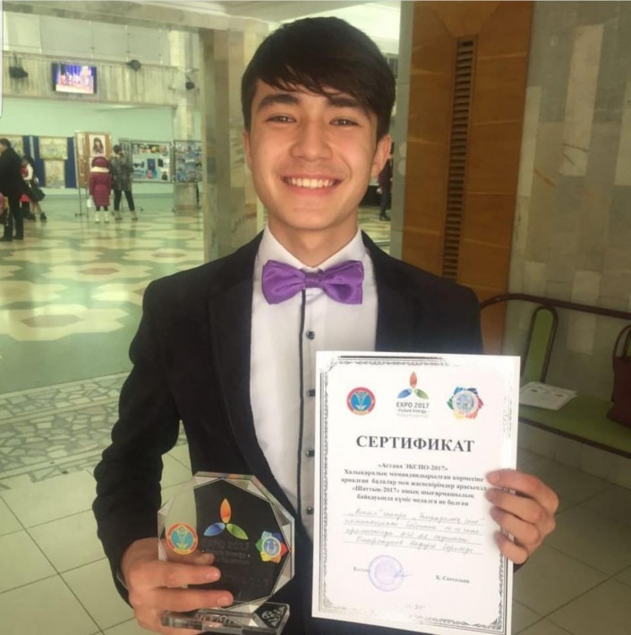 Надир с наградой за второе место в конкурсе "Шаттык-2017".
