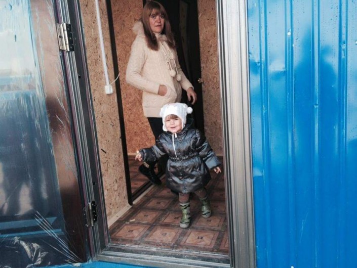 На собранные средства был сделан контейнер (синий на фото внизу). Сейчас он стоит напротив вагончика, где живет семья Остапчук.